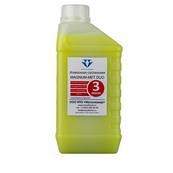 Монокристаллические алмазные суспензии на водной основе два в одном с добавлением охлаждающего лубриканта. Монокристаллы имеют меньшее количество режущих краев а форма напоминает куб, поэтому идеально подходят для рутинной работы и обработки материалов различной твердости. Суспензии подходят как для автоматической подачи с помощью дозирующего устройства шлиф-полировальной машины, так и для ручной подачи с помощью распылителя.