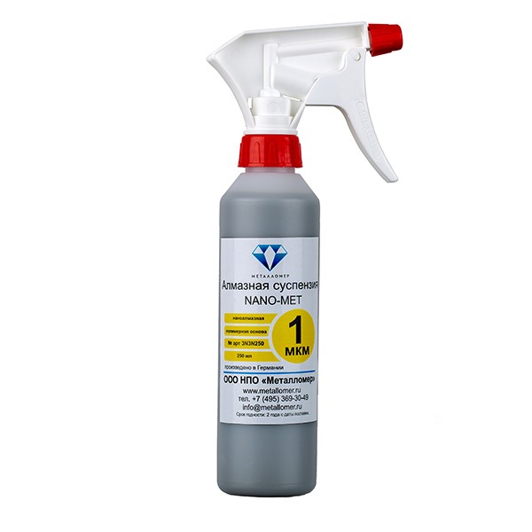Алмазная смесь состоящая из наночастиц на полимерной основе, данный тип алмазных частиц имеет большое количество режущих граней, который обеспечивает прекрасный съем материалов разной твердости и вязкости, а особая полимерная основа вытесняет воду с поверхности образца помогая добиваться высокоэффективного результата.