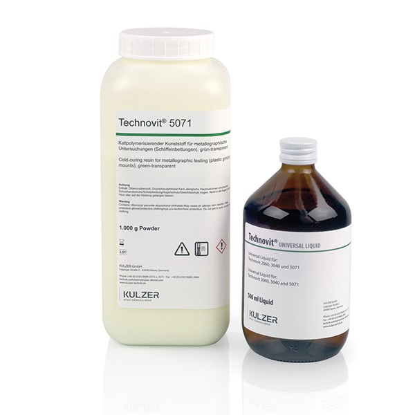 Данный продукт специально разработан для такого случая запрессовки образца, когда смолу необходимо удалить после исследования, на пример, при работе с СЭМ, взятии образцов микропроб или электролитической подготовки образца. Technovit 5071 обладает также превосходными адгезионными свойствами, например, для применения в тензодатчиках.