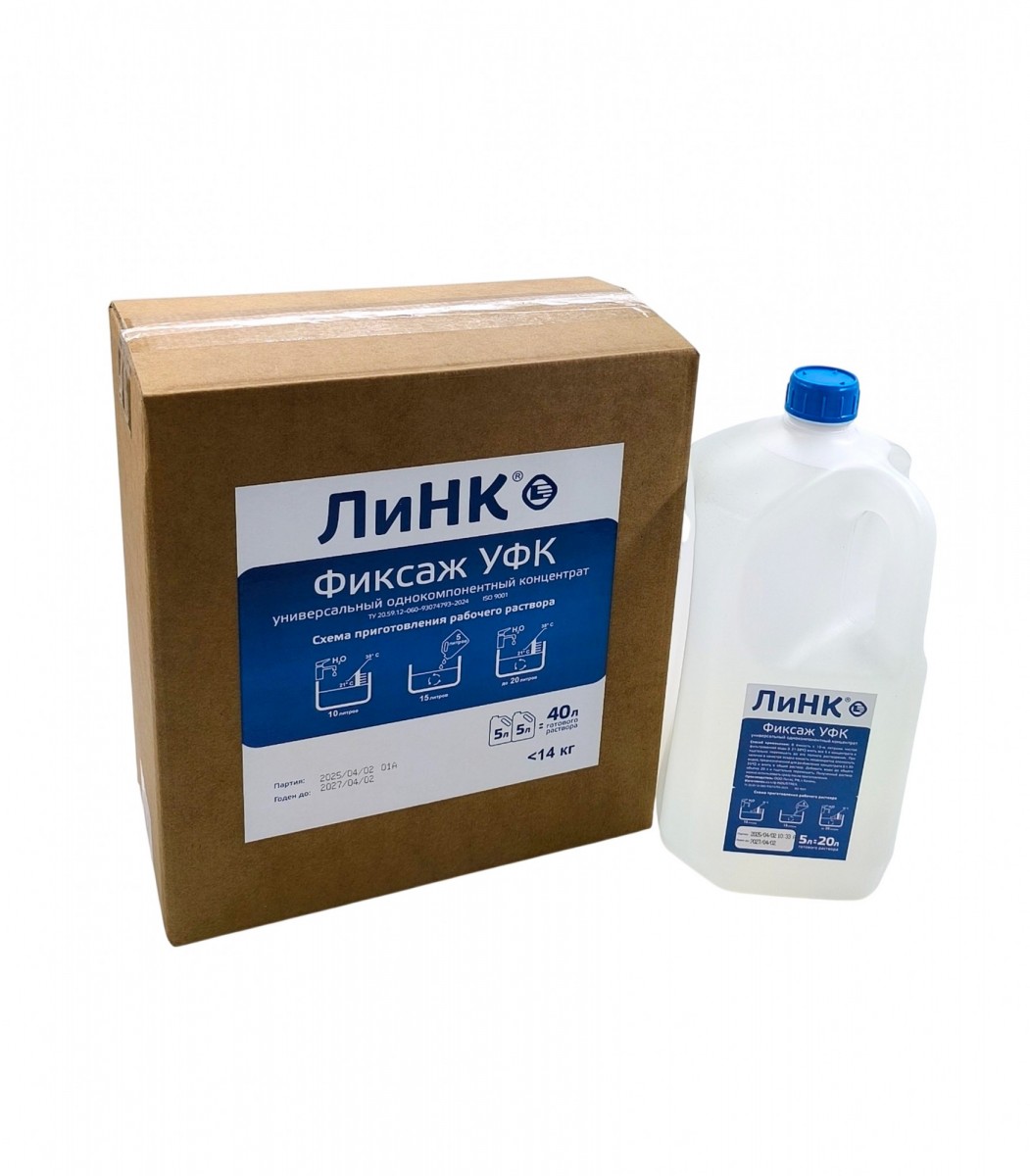 Фиксаж ЛиНК УФК изготавливается ООО «ЛИТАС» по ТУ 20.59.12-060-93074793-2024 из п/ф INDUSTREX (ранее KODAK). Усовершенствованная рецептура позволяет применять его как для ручной, так и для автоматической обработки, а также отказаться от дополнительных компонентов, которые входят в состав большинства фиксажей для машинной обработки. Этот фиксаж поддерживает высокую производительность, и обеспечивает улучшенную сохраняемость рентгенограмм. Он совместим со всеми циклами обработки. Фиксаж может применяться и как рабочий раствор, и как освежитель (регенератор). Немаловажной особенностью фиксажа ЛиНК УФК является его слабый запах.
